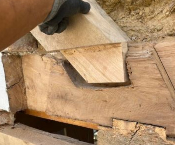 Bei dieser Teilreparatur am Fachwerkhaus haben wir defekte Holzelemente fachgerecht ersetzt. Das Ergebnis: eine stabile Konstruktion, die den Charme des Originals bewahrt und für viele weitere Jahre Bestand hat.
